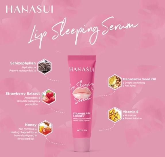 Selanjutnya ada Hanasui Lip Sleeping Serum juga bisa jadi pilihan Stylovers untuk merawat bibir agar pink alami dan lembap.