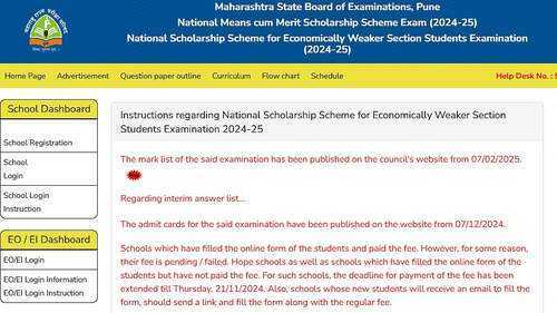 State-specific authorities will distribute the NMMS test results for 2024–2025. Other states will release their results between February and April 2025, with some governments delaying until May or June 2025, while Maharashtra has already made its results public.